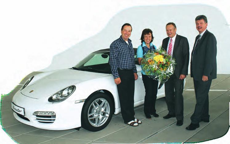 Bei der Jubiläums-Sonderverlosung im Juni hat Eugen Käppeler aus Michelwinnaden einen Hauptpreis gewonnen.NacheinemerlebnisreichenTagimPorschezentrumStuttgartkonnteerzusammenmitseiner Ehefrau Caudia den nagelneuen Porsche Boxster mit nach Hause nehmen. Kundenberater Peter Hepp und Marketingleiter Josef Traub gratulierten bei der Übergabe in Zuffenhausen im Namen der Bad Waldseer Bank vor Ort und wünschten den Beiden allseits gute Fahrt.