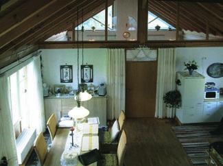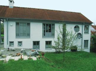 Wer moderne Architektur und offene, luftige Räume liebt, dem wird dieses Haus bestimmt gefallen. Die Außenfassade mit den verschie-densten Fensterformen zeigt es bereits, dass auch innen nicht das übliche „08/15“ zu erwar-ten ist. Hier fällt nicht nur der Grundriss etwas aus dem Rahmen. So gibt es z.B. im EG Wohn- und Nutzräume, anstelle von Kellerräumen. Das komplette OG ist bis zum Dachspitz offen mit Sichtschalung und Glaszwischenwänden – ein ganz besonderes Raumgefühl!